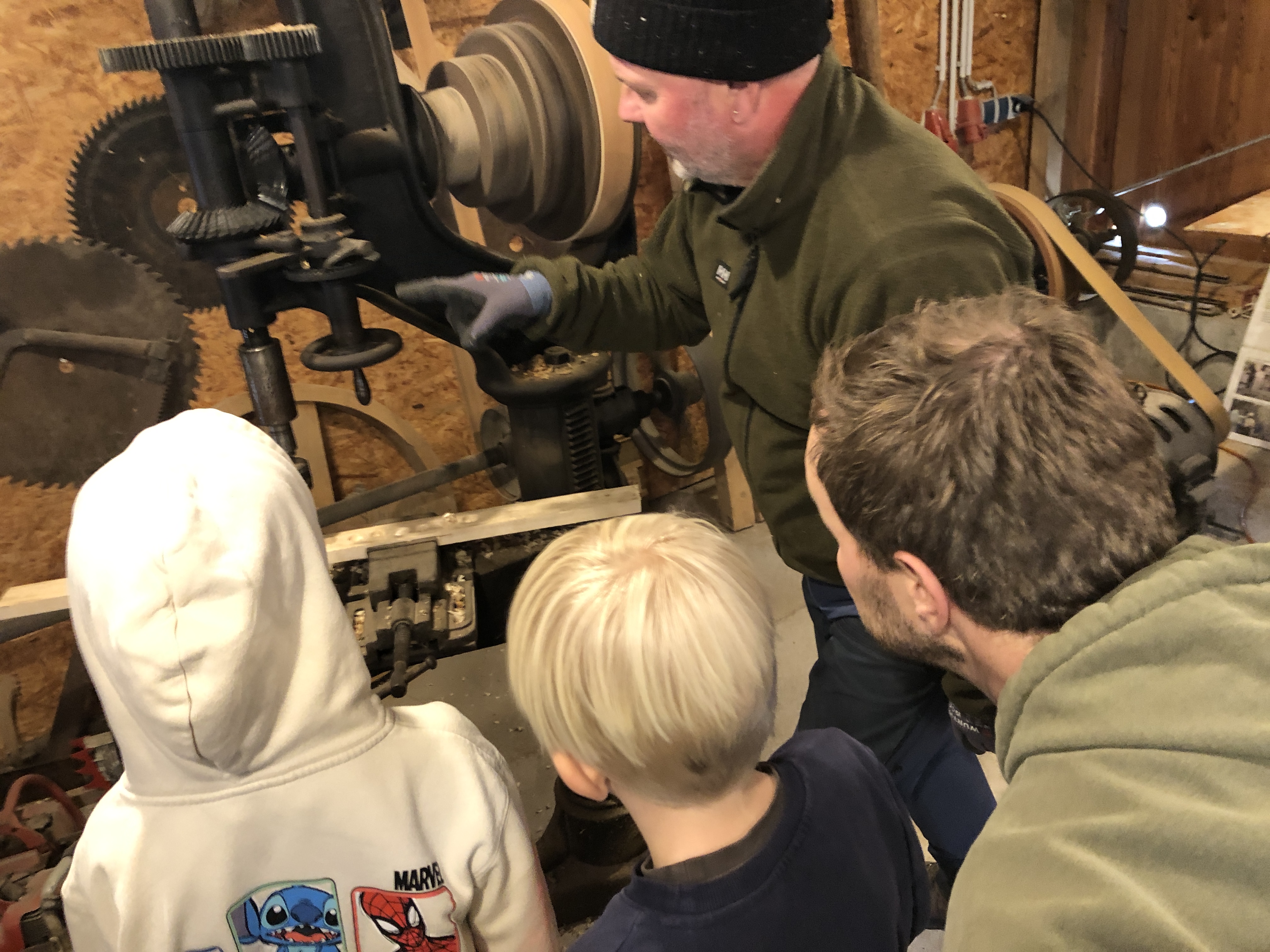 In der Schreinerei durften die Kinder selbst Hand anlegen: an der historischen Bohrmaschine wurden Löcher fachmännisch (und unter Aufsicht) gebohrt, am Spreißelhacker wurden Spreißel gehackt und mit dem Maisrebler die Körner vom Kolben getrennt. Auch mit der Kehrmaschine wurde fleißig gearbeitet und das anschließende Säubern der "Kehrer" (Mensch und Maschine) sorgte für besonders viel Spaß.